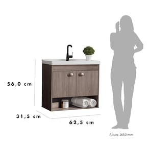 Medida do Gabinete: (L X A X C) 30cm x 55cm x 62,5cm Peso Gabinete: 10,2 KG Peso Suportado: 14 KG Medida da Cuba: (L X A X C) 30cm x 2,5cm x 62,5cm Furo da torneira: 2,7cm Furo do ralo/válvula: 3,2cm Medida da Embalagem (produto desmontado): (L X A X C) 32,5cm x 24,5cm x 66,5cm Peso da Embalagem: 11 KG