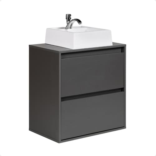 Discreta e charmosa, a cuba de marmorite que acompanha o conjunto contém as medidas de 35cm de largura, 35cm de profundidade e 11cm de altura, estrutura funcional e minimalista.