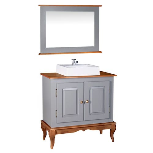 Gabinete para Banheiro com Cuba e Espelheira Dália 3050 - Cinza/Imbuia Glazer
