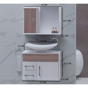 *PRODUTO TOTALMENTE RESISTENTE A ÚMIDADE E RESPINGOS DE ÁGUA! Acabamento da Cuba: Pintura UV Acabamento da Gaveta: Pintura UV Acabamento da Porta: Pintura UV Acabamento da Prateleira: Pintura UV Acompanha Cuba: Sim Acompanha Tampo: Sim Ambiente Principal: Banheiro codigo_ean: 7909903226629 Cor: Rústico Cor do Produto: Rustico Cor Interna: branco Escala de Brilho: Brilhante Escala de Brilho da Gaveta: Brilhante Escala de Brilho da Porta: Brilhante Escala de Brilho da Prateleira: Brilhante Espessura do Espelho: 3 mm Formato do Espelho: Quadrado Furação para Cuba e Torneira: Sim Gaveta com Chave: Não Informações Complementares: Produto vai montado. Não acompanha parafusos e buchas para a instalação. Itens Inclusos: Gabinete + cuba + espelheira Linha ou Coleção: Linha Turin Manual de Montagem e Instalação: https://product-hub-prd.madeiramadeira.com.br/821216/documents/61196d4c-3e59-474b-b40d-d58d788ebb501145856contarinimOveis.pdf Material da Cuba: Mármore Sintético Material da Gaveta: MDF Material da Porta: MDF Material da Prateleira: MDF Material do Puxador da Gaveta: Plástico Material do Puxador da Porta: Plástico Material do Tampo: MDF Material Principal: MDF Medida da Cuba (C x L x P): 42 x 12 x 33 Medida da Espelheira (A x L x P): 36,5 x 50 x 11 Medida do Gabinete (A x L x P): 37,5 x 51 x 33 Necessita Montagem: Não Origem do Produto: Nacional Peso: 18 kg Peso Máximo por Gaveta: 10 kg Peso Máximo por Prateleira: 5 kg Possui Espelheira: Sim Possui Gabinete: Sim Possui iluminação: Não Possui Pés: Não Possui Rodízio: Não Produto Montado: Não Recomendações de Uso, Manutenção e Limpeza: A limpeza deve ser feita com pano úmido e liso. Não deve ser utilidade materiais ásperos ou jatos de água diretamente sob o produto. Suporta Até (kg): 20 kg Tamanho do Espelho (A x L): 25 x 35 Tipo de Corrediça da Gaveta: Metálica Simples Tipo de Dobradiça/Corrediça da Porta: Metálica Tipo de Porta: Bater Tipo de Puxador da Gaveta: Externo Tipo de Puxador da Porta: Externo Marca: Contarini