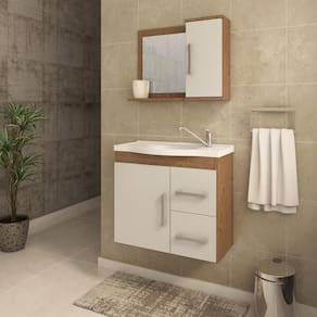 OGabinete Para Banheiro Com Lavatório E Espelho Vix Amendoa E Off White MGM Móveis 65cm é ideal para um banheiro elegante e funcional. Suspenso, possui uma porta, duas gavetas com corrediças telescópicas e uma prateleira adicional. A espelheira é equipada com uma porta e duas prateleiras para organização. Com estrutura 100% MDF e lavatório de mármore sintético, oferece durabilidade e estilo. Confira na ABC da Construção e conheça o Gabinete Para Banheiro Com Lavatório E Espelho Vix Amendoa E Off White MGM Móveis 65cm, o armário/gabinete para banheiro ideal para sua casa!