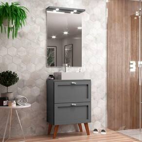Conteúdo da embalagem01 Gabinete para banheiro com tampo01 kit de pés em madeira maciça01 Cuba de marmorite01 Espelho 60cmKit de ferragens para montagemManual de montagemObjetos decorativos, torneira e ralo NÃO acompanham o produto