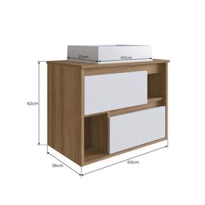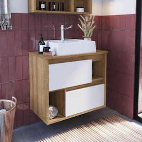 O gabinete para banheiro LVP03 é produzido em MDP 15mm, acabamento FF. Possui 2 nichos que suportam 1kg cada, 2 gavetas com corrediça metálica e que suportam 2kgs cada. Acompanha cuba em marmorite. Produto suporta até 10kgs. Conteúdo da embalagem: móvel, ferragens e manual de montagem. A fixação das peças e/ou acessórios é feita por parafusos e cavilhas. Necessita fixação na parede e acompanha parafusos para fixação. Para uma limpeza mais efetiva, utilizar apenas uma flanela seca. Não utilizar produtos abrasivos. Garantia de 03 meses contra defeitos de fabricação. Medidas do produto (AxLxP): 62x60x36cm. Peso do produto: 32kgs. Marca: Não Informado