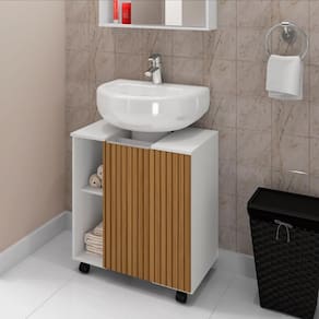 O Gabinete Pequin é ideal para banheiros com lavatório de coluna, oferecendo praticidade e excelente aproveitamento de espaço. Seu design permite encaixe perfeito abaixo do lavatório, entre a coluna, garantindo funcionalidade no dia a dia.