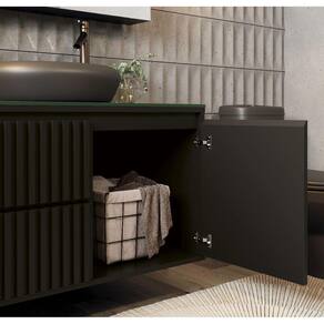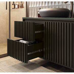 O Gabinete possui tampo de vidro de 8mm de espessura, que da beleza e maior resistência ao seu produto, puxadores em cava 45º, dando estilo e leveza ao ambiente, gavetas com corrediças telescópicas e sistema slow de fechamento suave, também possui divisórias internas que facilitam a organização de seu banheiro.