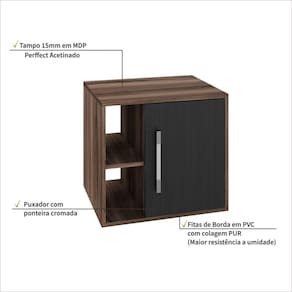 Gabinete Soft 500 Perffect Acetinado Nogal C/preto ônix Sobre o ProdutoGabinete Soft 500 Perffect AcetinadoDescrição do Produto:O Gabinete Soft 500 GTSF500 possui 01 porta e prateleira lateral, tem design compacto, perfeito para pequenos espaç linha Basic traz móveis funcionais e de design tradicional, aliando simplicidade e estilo para seu ambiente de banheiro!Itens Inclusos:1 GabineteDimensões dos Produtos:Gabinete Soft 500 Perffect Acetinado: 50 x 40 x 45 cmInformações Logísticas (Comp. X Prof. X Alt.) 54 x 42 x 28 cm - Peso: 12,125 KgPeso Total: 12,125 KgObservações:Não acompanha acessórios decorativos. Imagens meramente ilustrativas.Informações Técnicas / Características:- Cor do Produto: Perffect Acetinado - Marca: Compace- Modelo: GTSF500- Linha: Basic- Material: Mdp - Acabamento: Perffect Acetinado- Escala de Brilho: Fosco- Fita de Borda: Pvc c/colagem PUR- Possui Portas: 1- Tipo de Porta: Bater - Material do Puxador: Abs- Possui Prateleiras: 1- Peso Máximo por Prateleira: 3 kg- Possui Pés: Não, suspenso - Furação para Cuba / Lavatório: Não - Suporta Até (kg): 15 kg- Comprimento: 50cm- Profundidade: 40cm- Altura: 45cm - Peso Lí.: 10,98Kg- Recomendações de Uso, Manutenção e Limpeza: Para a limpeza, utilize flanela seca ou pano macio levemente umedecido em água. Utilize um pano seco em seguida. Evite com produtos químicos (solventes, thinner, acetona, etc) e não utilize nenhum tipo de esponja de aço.- Necessita de Montagem: Sim / Acompanha Manual de Montagem- Complexidade da Montagem: Média: pode ser montado por mais de uma pessoa e/ou necessite de maior conhecimento para montagem.- Garantia: 6 meses Material: Mdp | Acabamento: Perffect Acetinado | Escala de Brilho: Fosco | Fita de Borda: Pvc | Possui Portas: 1 | Tipo de Porta: Bater | Tipo da Dobradiça: Metálica | Comprimento: 50 | Limite de unidades por venda: É possível comprar até 1 unidade por venda. | Quantidade máxima de pedido: 1 | Largura: 40 | Altura: 45 | Profundidade: 40 | Preço Tabelado: | Cor: Multicolorido | Certificação de teste externa: Não Aplicável | Baterias são necessárias?: false | Palavras-chave de Pesquisa: Não aplicável | Fonte de energia: Não aplicável | Fabricante: Compace | da peça: | Is Fragile: | Exige montagem: | Peso do item: | Dimensões do item P x L x A: | Principais Características do Produto 0: | Principais Características do Produto 1: | Principais Características do Produto 2: | Componentes incluídos: | de caixas: | Quantidade de itens: | do modelo: Cor: Nogal C/Preto Ônix