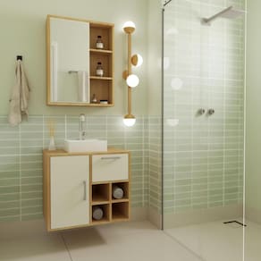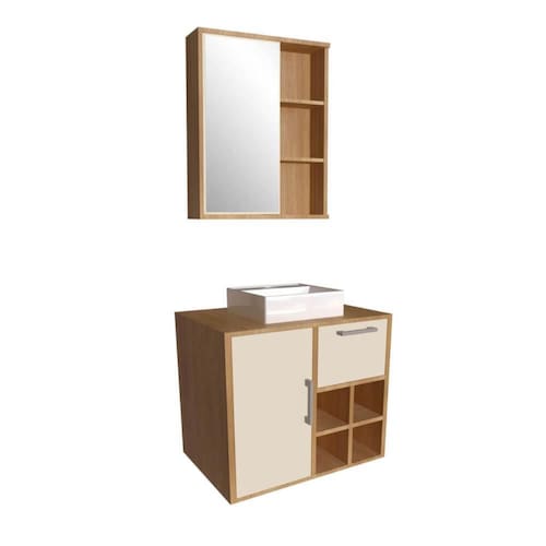 O conjunto para banheiro CJ7242 é produzido em MDP 15mm e acabamento FF fosco. O gabinete possui 1 porta de bater com dobradiça metálica, 1 prateleira interna que suportam 8kgs, 1 gaveta com corrediça metálica e que suporta 10kgs e 4 nichos. Puxadores em ABS. Estrututa do fundo em 3mm. A espelheira possui 1 porta de bater com dobradiça metálica, espelho 3mm colado, 2 prateleiras internas e 2 prateleiras externas. Necessita fixação na parede e acompanha os parafusos para a fixação. Produto suporta até 45kgs. Conteúdo da embalagem: móvel, ferragens e manual de montagem. A fixação das peças e/ou acessórios é feita por parafusos e cavilhas. Para uma limpeza mais efetiva, utilizar apenas pano macio umedecido e sabão neutro. Não utilizar produtos abrasivos. Garantia de 03 meses contra defeitos de fabricação. Medidas do produto gabinete (AxLxP): 59x68x40cm. Medidas do produto espelheira (AxLxP): 65x60x14cm.Peso total do produto: 32,09kgs. Produto acompanha cuba branca em mármore sintético. Marca: Não Informado