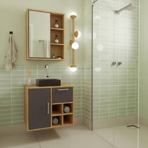 O conjunto para banheiro CJ7242 é produzido em MDP 15mm e acabamento FF fosco. O gabinete possui 1 porta de bater com dobradiça metálica, 1 prateleira interna que suportam 8kgs, 1 gaveta com corrediça metálica e que suporta 10kgs e 4 nichos. Puxadores em ABS. Estrututa do fundo em 3mm. A espelheira possui 1 porta de bater com dobradiça metálica, espelho 3mm colado, 2 prateleiras internas e 2 prateleiras externas. Necessita fixação na parede e acompanha os parafusos para a fixação. Produto suporta até 45kgs. Conteúdo da embalagem: móvel, ferragens e manual de montagem. A fixação das peças e/ou acessórios é feita por parafusos e cavilhas. Para uma limpeza mais efetiva, utilizar apenas pano macio umedecido e sabão neutro. Não utilizar produtos abrasivos. Garantia de 03 meses contra defeitos de fabricação. Medidas do produto gabinete (AxLxP): 59x68x40cm. Medidas do produto espelheira (AxLxP): 65x60x14cm.Peso total do produto: 32,09kgs. Produto acompanha cuba preta em mármore sintético. Marca: Não Informado