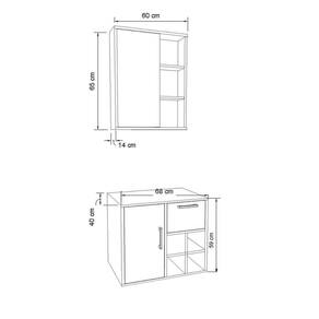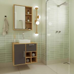 O conjunto para banheiro CJ7242 é produzido em MDP 15mm e acabamento FF fosco. O gabinete possui 1 porta de bater com dobradiça metálica, 1 prateleira interna que suportam 8kgs, 1 gaveta com corrediça metálica e que suporta 10kgs e 4 nichos. Puxadores em ABS. Estrututa do fundo em 3mm. A espelheira possui 1 porta de bater com dobradiça metálica, espelho 3mm colado, 2 prateleiras internas e 2 prateleiras externas. Necessita fixação na parede e acompanha os parafusos para a fixação. Produto suporta até 45kgs. Conteúdo da embalagem: móvel, ferragens e manual de montagem. A fixação das peças e/ou acessórios é feita por parafusos e cavilhas. Para uma limpeza mais efetiva, utilizar apenas pano macio umedecido e sabão neutro. Não utilizar produtos abrasivos. Garantia de 03 meses contra defeitos de fabricação. Medidas do produto gabinete (AxLxP): 59x68x40cm. Medidas do produto espelheira (AxLxP): 65x60x14cm.Peso total do produto: 32,09kgs. Não acompanha cuba. Marca: Não Informado