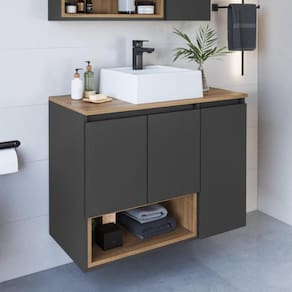O gabinete para banheiro BL9222 é produzido em MDP 15mm e acabamento FF fosco. Possui 1 prateleira interna que suporta 10 kgs, 3 portas com dobradiças metálica e 1 nicho que suporta até 10kgs. Estrututa do fundo em 3mm. Produto suporta até 30kgs. Conteúdo da embalagem: móvel, ferragens e manual de montagem. Necessita fixação na parede e acompanha os parafusos para a fixação. A fixação das peças e/ou acessórios é feita por parafusos e cavilhas. Para uma limpeza mais efetiva, utilizar apenas pano macio umedecido e sabão neutro. Não utilizar produtos abrasivos. Garantia de 03 meses contra defeitos de fabricação. Medidas do produto (AxLxP): 61x80x40cm. Peso do produto: 21,80kgs. Produto acompanha cuba branca em mármore sintético. Marca: Não Informado