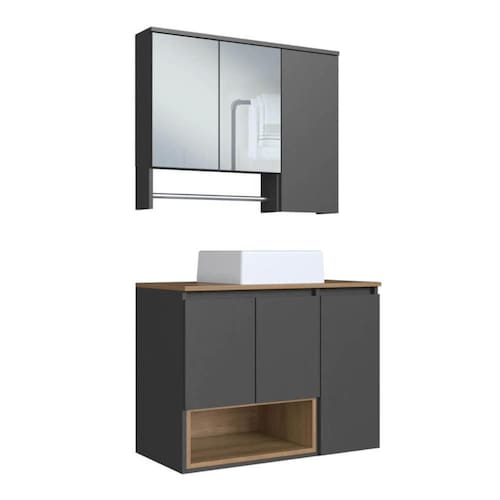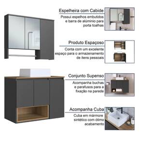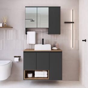 O conjunto para banheiro CJ9000 é produzido em MDP 15mm e acabamento FF fosco. O gabinete possui 1 prateleira interna que suporta 10 kgs, 3 portas com dobradiças metálica e 1 nicho que suporta até 10kgs. Estrututa do fundo em 3mm. A espelheira possui 3 prateleiras internas que suportam 2kgs cada, 3 portas de bater com dobradiça metálica, 2 espelhos de 3mm colados e 1 toalheiro em alumínio cromado. Produto suporta até 30kgs. Conteúdo da embalagem: móvel, ferragens e manual de montagem. Necessita fixação na parede e acompanha os parafusos para a fixação. A fixação das peças e/ou acessórios é feita por parafusos e cavilhas. Para uma limpeza mais efetiva, utilizar apenas pano macio umedecido e sabão neutro. Não utilizar produtos abrasivos. Garantia de 03 meses contra defeitos de fabricação. Medidas do produto gabinete (AxLxP): 61x80x40cm. Medidas do produto espelheira (AxLxP): 63x80x14cm. Peso total do produto: 40,00kgs. Produto acompanha cuba branca em mármore sintético. Marca: Não Informado