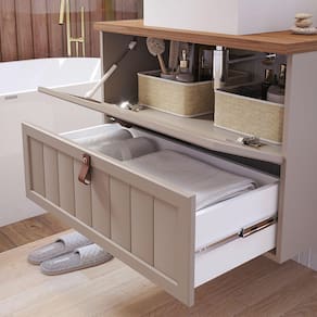 Características: Estrutura em MDF Acabamento em Pintura UV Puxador e alça em couro 01 Porta com pistão à gás e dobradiças metálicas 01 Gaveta com corrediças telescópicas Acompanha cuba em mármore sintético Acompanha espelho