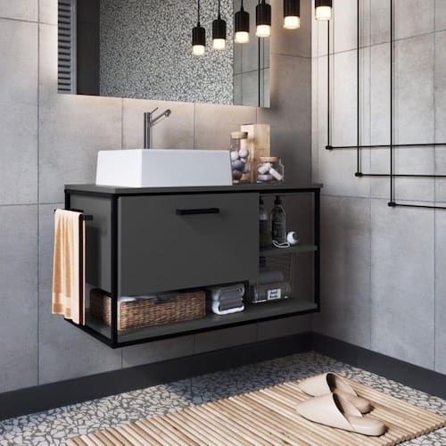 Altura do Conjunto: 44.5 cm Ambiente: null Ambiente Principal: Banheiro Cor: Preto/Grafite Informação Complementar: 1x Gabinete Suspenso para Banheiro 80cm P1007 Sem Cuba Preto/Grafite Largura: 80 cm Altura: 44,5 cm Peso: 27 kg Profundidade: 41,5 cm Necessita Montagem: Sim