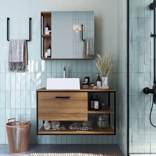 O Gabinete Para Banheiro Suspenso com Cuba e Espelheira P1013 vai ajudar na decoração do seu banheiro! Criando espaços para seus objetos de uso cotidiano e até para pequenos objetos decorativos! Alé do lindo design co,binado por metal e MDP. Acompanha Lâmpada: Não Acabamento da Cuba: Alto Brilho Acabamento da Porta: Finish Foil Acabamento da Prateleira: Finish Foil Acompanha Cuba: Sim Acompanha Tampo: Sim Ambiente Principal: Banheiro codigo_ean: 7909903235300 Complexidade da Montagem: Média: pode ser montado por mais de uma pessoa e/ou necessite de maior conhecimento para montagem Cor: Preto/Mel Cor da Cuba: Branco Cor do Produto: Preto/Mel Cor Flex: Não Cor Interna: mel Escala de Brilho: Fosco Escala de Brilho da Porta: Fosco Escala de Brilho da Prateleira: Fosco Espessura do Espelho: 3 Itens Inclusos: 1 Gabinete, 1 Espelheira, 1 Cuba, Kit Ferragens e Manual de Montagem Linha ou Coleção: Banheiro Manual de Montagem e Instalação: https://product-hub-prd.madeiramadeira.com.br/820526/documents/36356d9e-2e59-4e74-b799-495fdfc5eca3elsuspensoparabanheiro80cm.pdf Material da Cuba: Mármore Sintético Material da Porta: MDP Material da Prateleira: MDP Material do Puxador da Porta: Plástico Material do Tampo: MDP Material Principal: MDP Medida da Cuba (C x L x P): 11,5x33,5x32,5cm Medida da Espelheira (A x L x P): 53x60x15cm Medida do Gabinete (A x L x P): 46x80x41,5 Montagem Flex: Não Necessita Montagem: Sim Origem do Produto: Nacional Peso: 40 kg Peso Máximo por Prateleira: 5 kg Possui Espelheira: Sim Possui Espelho: Sim Possui Gabinete: Sim Possui iluminação: Não Possui Pés: Suspenso Possui Rodízio: Não Produto Montado: Sim Recomendações de Uso, Manutenção e Limpeza: Para a limpeza do móvel utilizar uma flanela seca. Sistema de Montagem: Parafusos e cavilhas Suporta Até (kg): 30 kg Tamanho do Espelho (A x L): 53x48cm Tipo de Dobradiça/Corrediça da Porta: Metálica Tipo de Porta: Misto (Bater e Basculante) Tipo de Puxador da Porta: Externo Ean: 7909903235300
