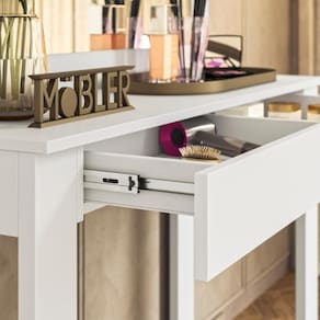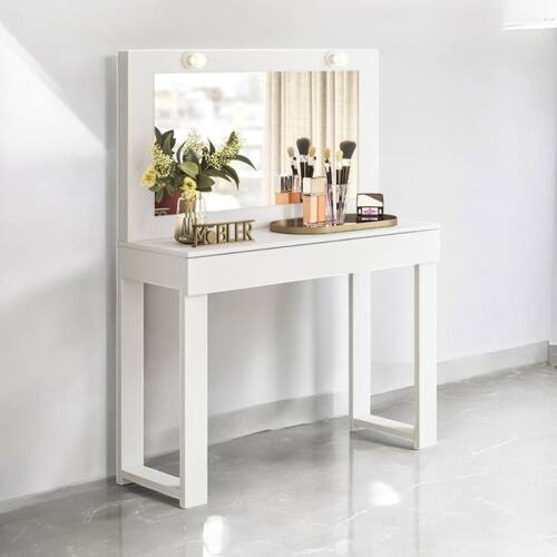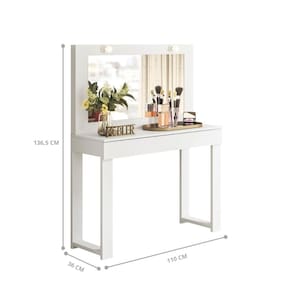 A Escrivaninha Penteadeira possui um amplo espelho iluminado por LEDs.