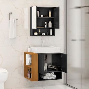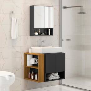 Com a cuba de design elegante, nichos laterais práticos e armário com espelho, ele une sofisticação e organização em um só produto.