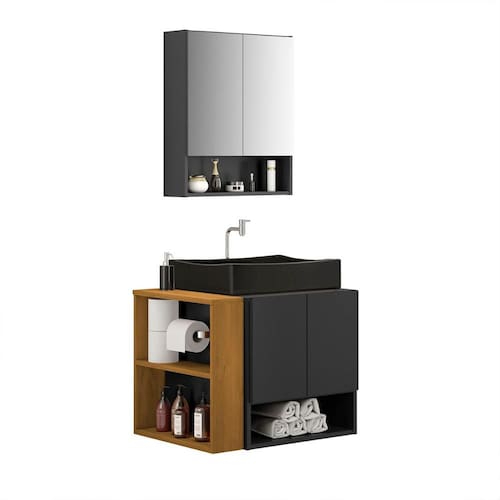 Compacto e elegante, combina o charme do MDP com o toque sofisticado da cuba Dalla em mármore sintético.