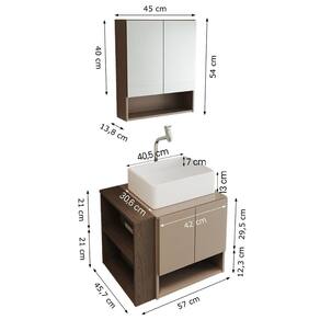 Dimensões da Espelheira: 45 cm(L) x 54 cm(A) x 13,8 cm(P);