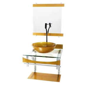 Gabinete de vidro 40cm para banheiro curvado duplo pc cuba redonda dourado real Os nossos gabinetes são indicados para projetos arrojados e de muito bom gosto, além de valorizar o seu ambiente com sofisticação em uma decoração de alto padrão, ele consegue usufruir das vantagens que o vidro proporciona e gerar uma durabilidade indiscutível, sem contar que com as várias opções de cores, você sempre poderá encontrar uma cor perfeita para o seu banheiro. Os vidros são pintados com tinta de alta performance, o que lhe garante a permanência da cor . Buscando inovar ainda mais e trazendo mais para os nossos produtos, lançamos o suporte de polipropileno, ultra resistente a umidade, não enferruja e nem descasca com o processo de higienização, o que faltava realmente para você ter um produto de alto padrão de qualidade e durabilidade indiscutível. dados técnicos Itens incluso: - bancada de vidro com furo para instalação da torneira 3,5cm diâmetro e da válvula click 4,5cm diâmetro - cuba de vidro redonda - espelho - estrutura de polipropileno cinza, ultra resistente a umidade e não enferruja - kit parafusos completo para instalação - prateleira de vidro da bancada - válvula click dimensões: - bancada de vidro: 40 x 42cm largura x profundidade - cuba de vidro redonda: 31cm diâmetro - prateleira bancada: 40 x 20cm largura x profundidade - espelho: 40 x 40cm largura x altura - porta toalha: 40cm largura - válvula click: 1 1/4 Espessuras: - bancada de vidro:10mm - cuba de vidro:10mm - prateleira bancada:5mm - espelho:3mm Atenção: preço referente somente ao gabinete, não acompanha torneira. Montagem: montagem e instalação não inclusa na venda ou preço do produto, elas são de inteira responsabilidade do cliente. Imagens ilustrativas. Marca: Não Informado
