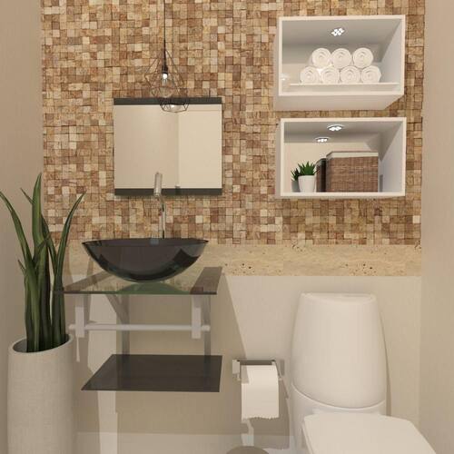 Combo 2 Em 1 Gabinete De Vidro 45Cm Ac Com Cuba Redonda + Torneira Algarve - Preto Super combo 2 em 1, tudo que o seu banheiro precisa, são 2 produtos em uma única compra: 01 combo 2 em 1 gabinete de vidro 45cm ac com cuba redonda; 01 torneira metal bica alta algarve. Mais fácil, mais rápido e mais barato. Dados técnicos Dados técnicos do gabinete: Itens inclusos: gabinete de vidro 45cm para banheiro composto de bancada de vidro, cuba de vidro, Prateleira da bancada, espelheira, válvula, estrutura e porta toalha de aço eletrostático e Kit parafusos completo para instalação. Dimensões: - bancada de vidro: 45 x 45 cm largura x profundidade - cuba de vidro: 35 cm diâmetro - prateleira bancada: 45 x 25 cm largura x profundidade - espelheira: 45 x 45 cm largura x altura - porta toalha: 45 cm largura - válvula Espessuras: - bancada de vidro: 8 mm - cuba de vidro: 10 mm - prateleira bancada: 6 mm - espelheira: 4 mm Itens inclusos: 01 torneira cromada Material: liga metálica cromada Conexão de entrada: 1/2 polegada -1/4 volta Altura total da torneira: 37 cm. Altura da queda dágua: 27 cm. : 12 meses conforme política de troca e devoluções . Pressão mínima da água: recomenda-se uma pressão de pelo menos 6mtc metros de coluna dágua para melhor performance do produto. Montagem: montagem e instalação não inclusa na venda ou preço do produto, elas são de inteira responsabilidade do cliente. Imagens ilustrativas Marca: Não Informado Ean: 7908240199009