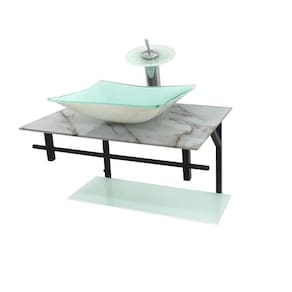 dados técnicos itens inclusos: - bancada de vidro temperado com furo para instalação da torneira 3,5cm diâmetro e da válvula click 4,5cm diâmetro - cuba de vidro retangular - suporte preto, resistente a umidade extrema e não enferruja - kit parafusos completo para instalação - prateleira de vidro - válvula click.