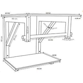 Dimensões: - bancada de vidro: 40 x 40cm largura x profundidade ; - cuba de vidro: 30x30cm largura x comprimento ; - prateleira da bancada: 40 x 20cm largura x profundidade ; - espelheira espelho : 40 x 40cm largura x altura ; - porta toalha: 40 cm largura ; - válvula click: 1 1/4