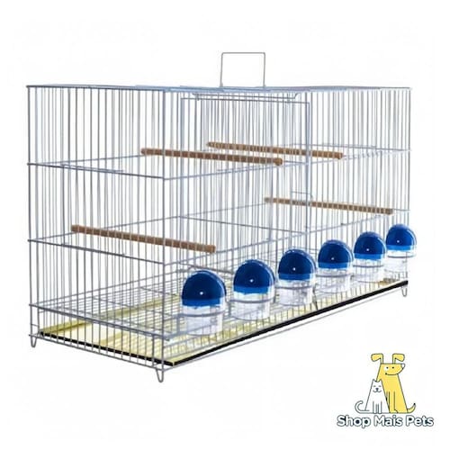Gaiola Criadeira Canário Belga Manon 6 Comedouros Meia Lua Gaiola criadeira 6 comedouros para Coleiro, Canários, Calafate, Manon, Mandarim, Diamante Gold entre outros pássaros com grade divisória e passadores na lateral