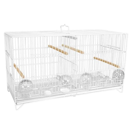 Gaiola Criadeira para Canário 6 Comedouros Meia Lua Quatiguá Ficha Técnica: Comprimento: 61,5 cm Altura: 34 cm Largura: 25,5 cm Espaçamento entre malhas: 13 mm Tipo de Porta: Guilhotina Possui divisória central