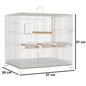 Comprimento: 37 cm Altura: 37 cm Largura: 28 cm Espaçamento entre malhas: 10 mm Pintura em tinta epóxi branca 2 Portas de mola Fundo aramado removível Fundo de chapa removível Pássaro indicado: Coleiro e Curió Passador lateral na direita Alça para transporte 3 Comedouros Marca: Não Informado