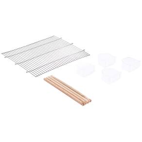 - Inclui 4 copos de plástico, 4 poleiros de madeira e divisória de arame