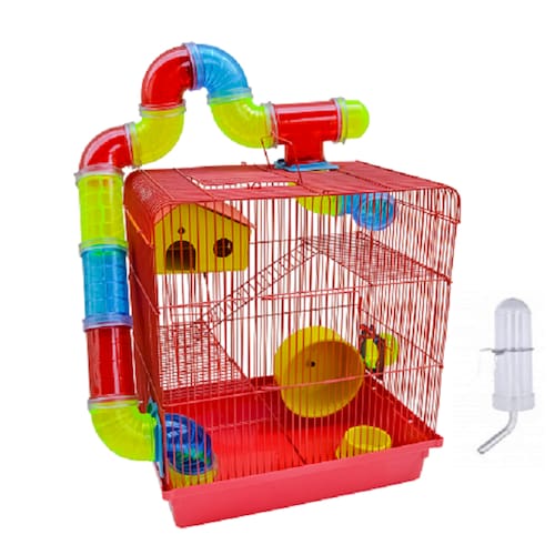 Gaiola Hamster 3 Andares Labirinto Tubos Coloridos CompletaExcelente Gaiola Labirinto com 3 Andares, Casinha, Comedouro, Bebedouro, Escadinhas e Tubos ColoridosIndicado para Hamster Russo Chines Sirio Gerbil Esquilo da MongoliaMais conforto para seu bichinho de estimaçãoCor: VermelhaMedidas: Altura: 43cmAltura com os Tubos: 60cmComprimento: 38cmLargura: 26cmAcompanha:01 Rodinha com 14cm01 Comedouro01 Bebedouro01 CasinhaEscadinhasTubos Labirintos mais ColoridosFácil Limpeza e HigienizaçãoProduto vai desmontado e embalado em caixa apropriada Marca: Chico Petstore