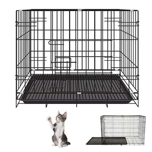 Esta gaiola com bandeja possui uma porta frontal para animais de estimação entrarem e saírem, e acessarem facilmente a alimentação, para que seu animal de estimação esteja bem alimentado enquanto estiver na gaiola.