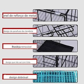 Com um acabamento eletro-revestimento resistente à ferrugem ajuda a maximizar a vida útil da gaiola, tornando-a perfeita para uso interno ou externo.