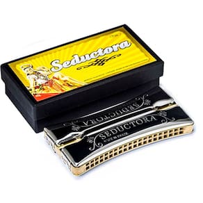 Gaita de Boca Harmônica Seductora 7980 Tipo: Oitavada Chapa: Latão com espessura de 0,90mm Corpo: Cobertura de aço inox, corpo de madeira em verniz Vozes: 80 Afinação: C Dó / G Sol A Hering: Em agosto de 1923 Alfred HERING, um imigrante alemão, fundou em Blumenau, uma cidade de colonização alemã no sul do Brasil, a Fábrica de Gaitas Alfred HERING, e o produto inicialmente fabricado foi a Harmônica de boca. Os negócios foram evoluindo e em 1940 aconteciam às primeiras exportações. Em 1966 a família HERING vendeu as suas ações para a HOHNER da Alemanha, empresa esta que foi sua proprietária até 1979 quando novamente foi adquirida por grupos brasileiros. Nestes 13 anos novas tecnologias vindas da HOHNER alemã foram incorporadas, melhorando ainda mais as já boas harmônicas HERING. Em 1996 as harmônicas HERING passaram a ser fabricadas pela Fábrica de Harmônicas Catarinense Ltda. Adquirimos e comercializamos somente produtos adquiridos das importadoras oficiais das marcas. : 3 meses pelo Importador / Fornecedor Marca: Não Informado Ean: 7896803009547