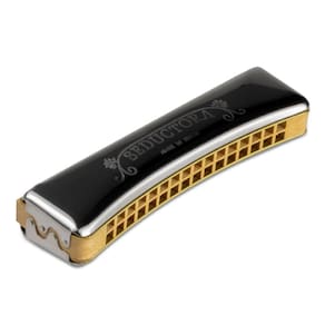 Gaita de boca oitavada Hering. Inclui 32 orifícos e intervalo de 2 oitavas entre as palhetas de latão 0.9mm. Afinação Dó (C) e Mi (E), tampas de inox e corpo de madeira.