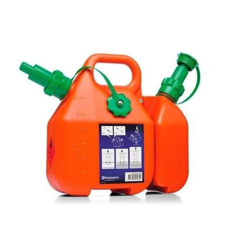 Bidão combinado, desenvolvido com exclusividade pela Husqvarna, tem capacidade para 6 litros de gasolina e 2,5 litros de óleo. O recipiente de combustível é equipado com uma eficiente proteção contra transbordamento. Quando o tanque fica cheio, o fluxo de combustível é interrompido imediatamente e você pode levantar o bidão sem correr risco de derramar o conteúdo. Assim, evita-se sujeira e desperdício. No modelo combinado, os recipientes para gasolina e óleo podem ser separados, facilitando na hora de transportar, manusear e guardar. Ente os compartimentos há espaço para se colocar limas e outras ferramentas. Ean: 7391883005651