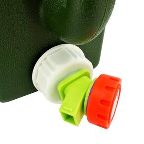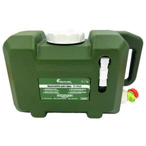 Material: HDPE BPA Free . Capacidade: 12 Litros. Cor: Verde. Tampa com vedação segura. Alça para transporte. Torneira com Tubo de Extensão. Slot de Armazenamento Para Tubo.