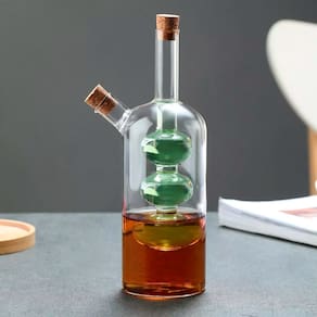 O Galheteiro de Vidro 2 em 1 é a solução ideal para armazenar e servir seus temperos favoritos com praticidade e sofisticação. Com um design inovador, ele conta com dois recipientes no mesmo frasco, permitindo armazenar diferentes líquidos sem misturá-los. O compartimento interno possui capacidade de 75ml, enquanto o externo comporta até 338ml, tornando-o perfeito para azeite e vinagre, molhos ou outros condimentos essenciais na sua cozinha.