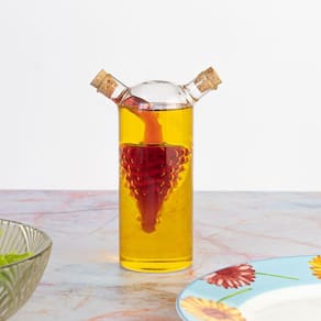 Leve mais elegância e charme para a mesa com o Galheteiro de Vidro 2 em 1 Grape, um acessório criativo e sofisticado para temperar saladas.