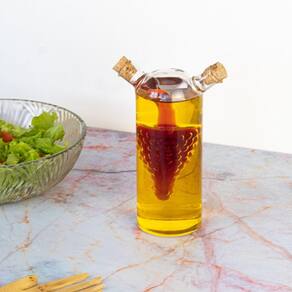 Ele é dois em um, possui um reservatório grande e outro menor para servir óleo e vinagre, o design super criativo é o diferencial deste Galheteiro e impede que os dois elementos se misturem. Além de economizar espaço, ainda decora a bancada da cozinha ou a mesa.