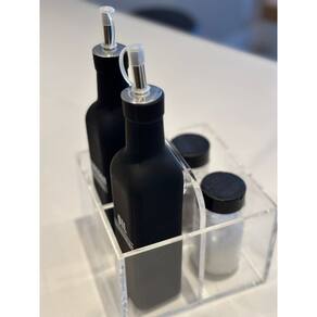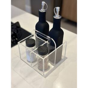 Organize sua cozinha com elegância e praticidade com nosso Galheteiro em Acrílico. Com quatro divisórias, ele é ideal para armazenar azeites, vinagres, molhos e temperos de forma segura e acessível. Fabricado em acrílico de alta qualidade, este porta galheteiro oferece durabilidade e um visual sofisticado, combinando perfeitamente com qualquer estilo de decoração. O design transparente facilita a visualização do conteúdo, enquanto o formato compacto otimiza o espaço na bancada ou na mesa. Mantenha seus condimentos favoritos sempre à mão, com um toque de modernidade e organização.