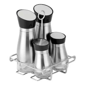 Item imprescindível na sua cozinha Gourmet, este Kit Galheteiro com 04 peças com Suporte de metal faz parte dos novos utensílios de cozinha com design criativo e sofisticado, sempre pensando na praticidade e facilidade no preparo e cozimento dos seus alimentos saudáveis.
