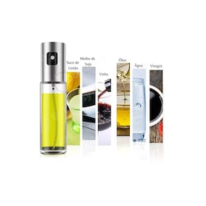Spray Pulverizador para azeite e vinagre em Vidro da CasitaNão desperdice mais óleo, azeite e vinagre na hora de temperar saladas entre outras refeições, o spray pulverizador é super prático para seu dia a dia.Ecologicamente correto e econômico, sai uma quantidade ideal em cada jato do spray evitando que você encharque seu alimento, deixando-o com menos gordura e mais sabor.O spray não é do tipo aerossol (com pressão), e sim do tipo borrifador com o jato do spray fino, que evita de causar sujeiras.Além de ser útil para temperar saladas, ele também facilita na hora de assar, grelhar, refogar e até mesmo para untar frigideiras.Com capacidade de 100ml, você poderá utiliza-lo com óleo, azeite, vinagre, suco de limão/laranja, molho de soja, molho de alho, vinho, shoyu, entre outros.Dependerá da sua necessidade e criatividade, o produto é indispensável para alimentos grelhados, os deixando mais dourados e mais saborosos. Elaborado em aço inoxidável e vidro, o spray pulverizador tem uma material super higiênico, resistente e de grande durabilidade.ESPECIFICAÇÕES:Material: PVC e vidroCapacidade: 100mlComprimento: 18cmDiâmetro: 4cmPeso: 224g cada itemITENS INCLUSOS:1 - Spray Pulverizador para azeite e vinagre em vidro