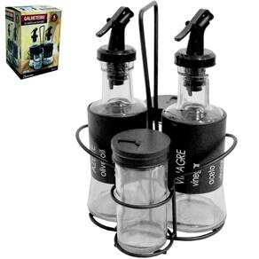 Galheteiro sofisticado em vidro com design moderno. Conjunto completo com 4 peças funcionais. Dois frascos de 200ml ideais para azeite e vinagre. Dois frascos menores de 85ml perfeitos para sal e pimenta. Acompanha suporte aramado na cor preta. Estrutura resistente que mantém as peças organizadas. Vidro transparente para fácil identificação do conteúdo. Frascos com tampas práticas que evitam desperdícios. Solução elegante para servir temperos à mesa. Combinação de vidro e metal que transmite sofisticação. Compacto e funcional, cabe em qualquer mesa ou bancada. Mantém condimentos essenciais sempre à mão. Ideal para uso diário ou ocasiões especiais. Fácil de limpar e higienizar no dia a dia. Ótima opção para presentear amantes da culinária. Estilo contemporâneo que combina com diferentes ambientes. Suporte aramado black confere um toque moderno. Excelente para restaurantes, lanchonetes e residências. Organização prática que valoriza sua mesa posta. Leve e portátil, podendo ser levado a eventos e jantares. Frascos resistentes, feitos para longa durabilidade. Perfeito para armazenar azeite, vinagre, óleo e molhos. Frascos menores ideais para temperos em pó ou líquidos. Ajuda a manter a cozinha mais prática e funcional. Um galheteiro versátil, elegante e indispensável no dia a dia. Marca: Não Informado