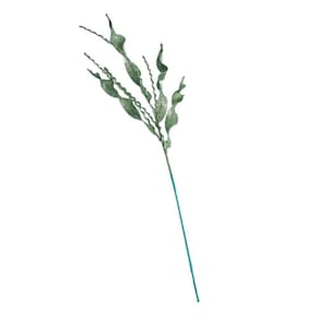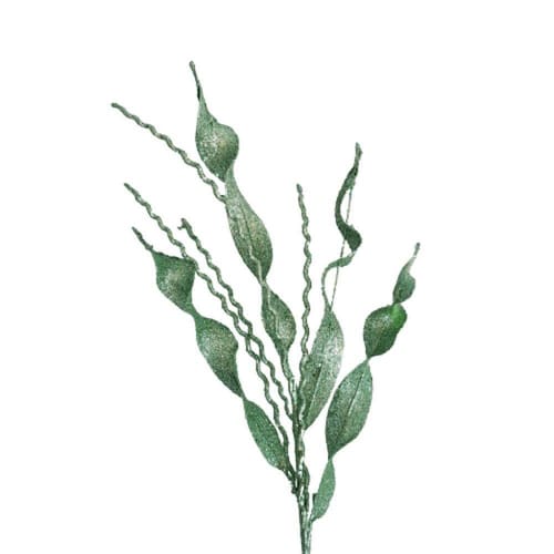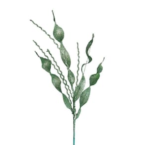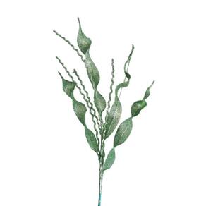 Galho Decorativo Natal alga felice verde com 80cm, confeccionado em poliéster e silicone revestido tinta verde e glitter com haste de arame revestida.