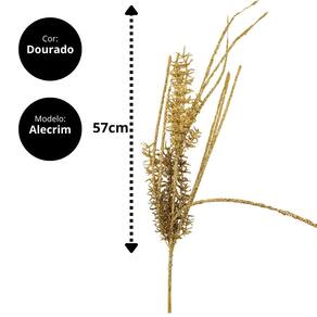 Adicione um toque de luxo e brilho à sua decoração natalina com este elegante galho de alecrim dourado. Com acabamento em glitter brilhante, ele traz sofisticação e luminosidade para árvores, guirlandas, arranjos de mesa ou qualquer espaço que precise de um charme especial. Com 57cm de comprimento, é uma peça versátil para diversas composições decorativas.