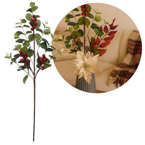 Galho Decorativo Natalino Folha de Eucalipto com Berries – 63cm
