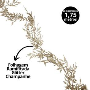 - 01 unidade Folhagem Natalina Ramificado Flexível Glitter Champanhe Max 1,75m