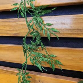 - 01 unidade Folhagem Natalina Ramificado Flexível Glitter Verde Max 1,75m