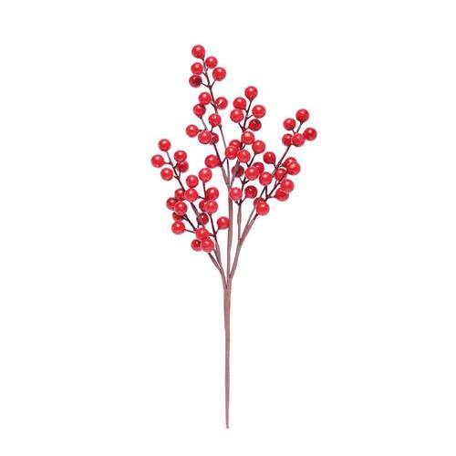 Galho Frutas Vermelhas - Embalagem de Venda: 1 UN - Cor Predominante: VERMELHO - Instruções de Limpeza: Limpar somente com pano macio levemente umedecido com água. - Composição: Plástico, Poliéster, Metal, Isopor e Papel.